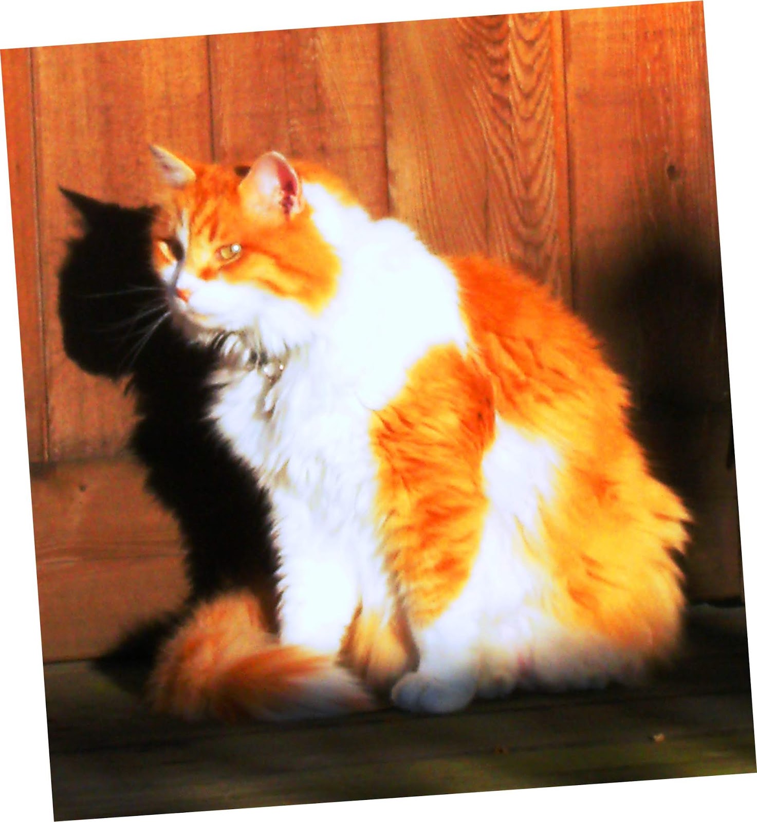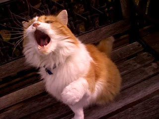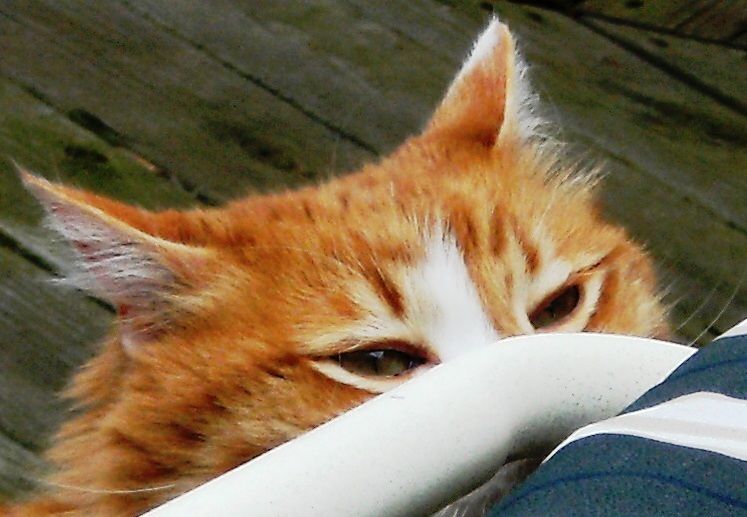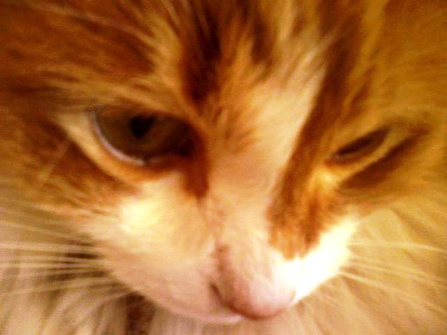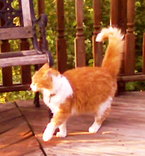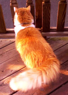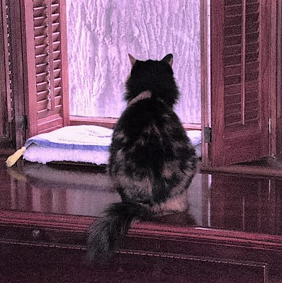 Northland Cat Clinic . Labs were drawn, blood pressure was taken - Powder checked out great. The Vet even said that her kidney function was that of a cat 10 years younger than she was. She had gained weight. She acted happy and frisky - even accepted the advances of our Vet and purred and arched her back when she was shown affection (very un-Powder-like!) Things were fine on Thursday morning - breakfast eaten and happy to relax and watch the world go by. Thursday night she seemed lethargic and she didn't want to eat (!). We coaxed a few bites, but all she wanted to do was snuggle around my neck. She shivered a bit, but I attributed that to the air conditioning and the fact that she had just received a lions cut - I just held her tight and she stopped shivering and began to purr in her normal fashion. We all fell asleep for the night. Things were much worse on Friday morning - no appetite, very weak and a bit disorientated. I called the Vet and we went right in.