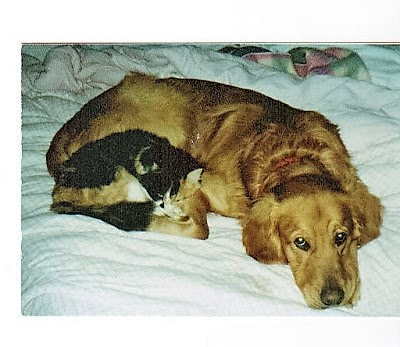Snoozing with her first dog-buddy, Jordan Circa 1998